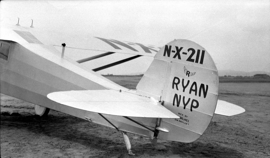 The tail of the famous airplane, the Spirit of St. Louis in 1927 at Dutch Flats in San Diego, California. Image taken by engineer Donald A Hall